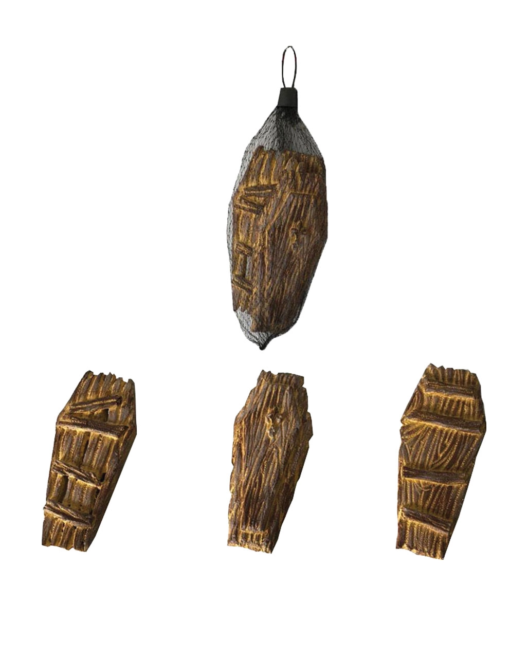 Die 3 St. Mini Sargdeckel als Streudeko für Halloween werden in einem Netzbeutel geliefert, der leicht zu öffnen ist. Jeder Sargdeckel besteht aus Polyfoam und ist realistisch bemalt, sodass er wie altes Holz aussieht. Die Größe der Sargdeckel beträgt ca.15 x 5 x 2,3 cm. Entdecke auch die Halloween Platzkarten im Kerzenleuchter Design 12 St.