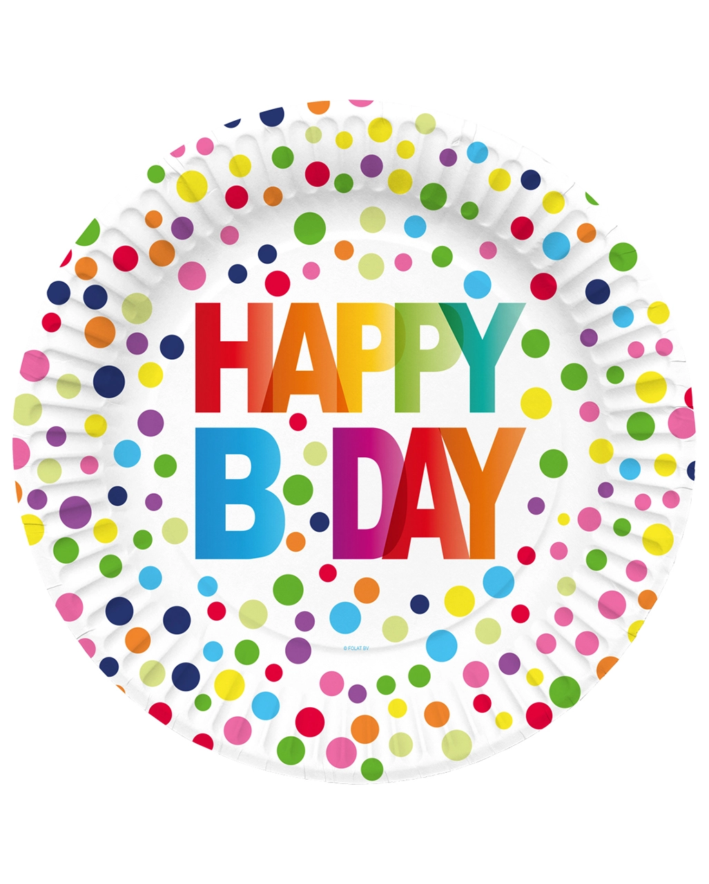 8 Happy B-Day Party-Teller sind eine farbenfrohe Geburtstags-Tischdeko mit Punkten. Da am schönsten Tag im Jahr alles perfekt sein soll, ist auch die richtige Geburtstags Tischdeko von Bedeutung. Das fröhliche Punkte-Design macht unsere Einweg Teller zum schönen Blickfang. Mit weiteren Party-Artikeln aus unserem Onlineshop, kannst du deine Festtafel individuell dekorieren und die einzelnen Elemente perfekt aufeinander abstimmen.