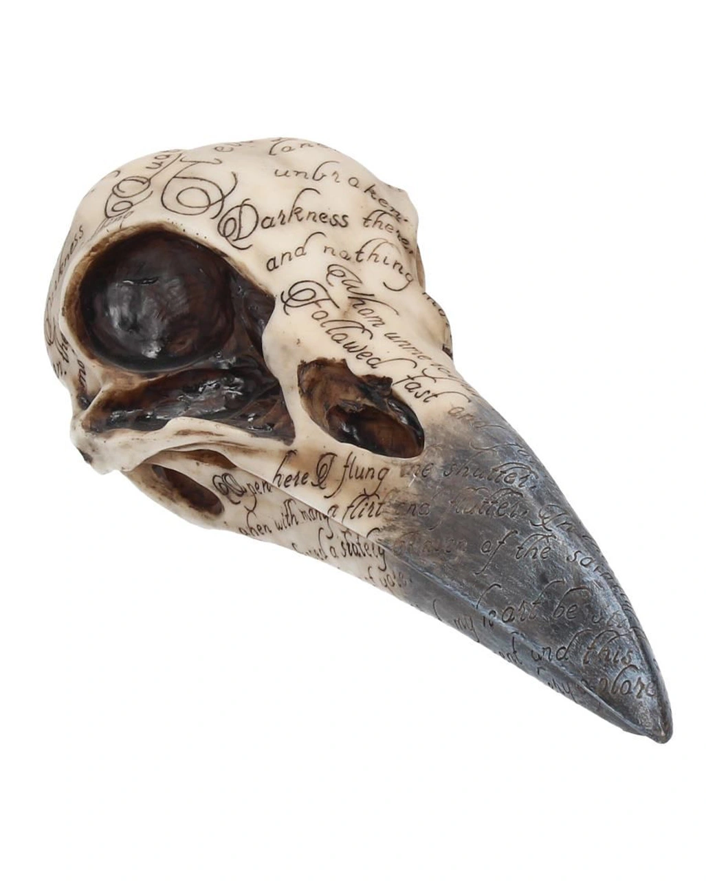 Edgar Allan Poe gilt als Meister der Kriminalliteratur und weiß ganz genau, wie er die Menschen zum Gruseln bringt. In Anlehnung an sein Gedicht “Der Rabe” erhältst du von uns Edgar´s Raben Totenschädel als morbide Halloween Tischdeko. Der Raben Schädel ist mit viel Liebe zum Detail gearbeitet und mit Zitaten aus seinem Gedicht beschrieben. Ein echter Blickfang für Fans des Morbiden!