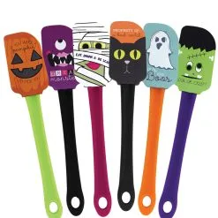 Extrem niedliche Halloween Teigschaber mit Spooky Halloween Motiv um deine Hexenküche in die richtige Spooktober Stimmung zu bringen. Mit den lustigen Halloween Teigschabern macht es so richtig Wonne, Halloween Kekse, Kuchen und feinstes Naschwerk zuzubereiten. Unsere zauberhaften Silikonspatel im Halloween-Stil sind nicht nur ideal für ikonische Dekorationen, sondern auch zum Verteilen von Zuckerguss, zum Anrühren von Teigen, Dressings oder Soßen. Da die Spatel aus Silikon bestehen, sind sie sowohl schmutz- als auch hitzebeständig.