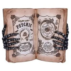 Die Chiromantie, auch Handlesekunst genannt, basiert auf dem Glauben, dass sich der Charakter und die Zukunft eines Menschen aus seiner Handfläche ablesen lassen. Unsere Hellseher Zauberbuch Deko ist an die Chiromantie angelehnt, denn das Buch wird von Skeletthänden mit mystischen Symbolen gehalten.