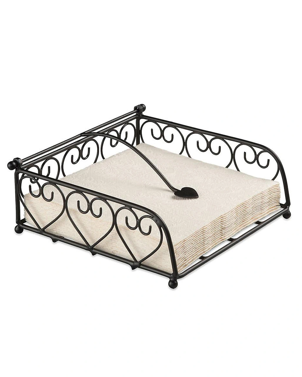 Eleganter schwarzer Metall Serviettenspender mit Herzen