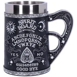 Spirit Boards sind für Hexen und Okkultisten seit langem eines der mächtigsten Werkzeuge, um Geister zu rufen. Der schwarze Ouija Board Bierkrug ist mit dem klassischen Spirit Board Design verziert und somit eine okkulte Tischdeko, die nicht nur Fans des Spirituellen begeistert.