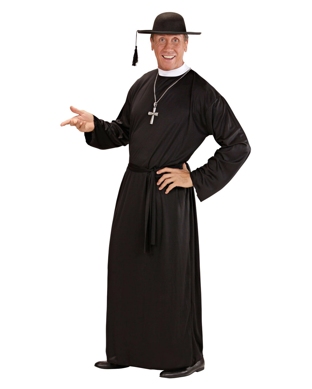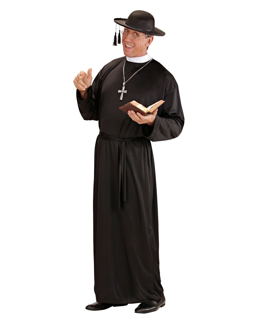 Verkleide dich an Karneval als Geistlicher & sehe zu das du beim Versuch zur Verführung der sexy Nonne standhaft bleibst. Mit dem schwarzen Priestergewand Kostüm bist du ideal verkleidet und sorgst damit für ein bisschen Anstand beim sündigen Treiben.