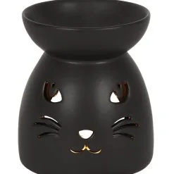 - schwarzer Keramik-Ölbrenner mit ausgestanztem Katzen-Design