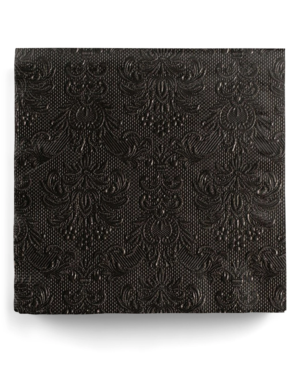 Geprägte Partyservietten wie diese schwarze Ornament Serviette wirken sehr elegant und passen zu vielen Mottos wie Geburtstag, Halloween und auch düster gestaltete Hochzeiten. Die gemusterten Gothic Mundtücher verzaubern auf jedem Buffet und verzieren die Gothic Tischdeko.