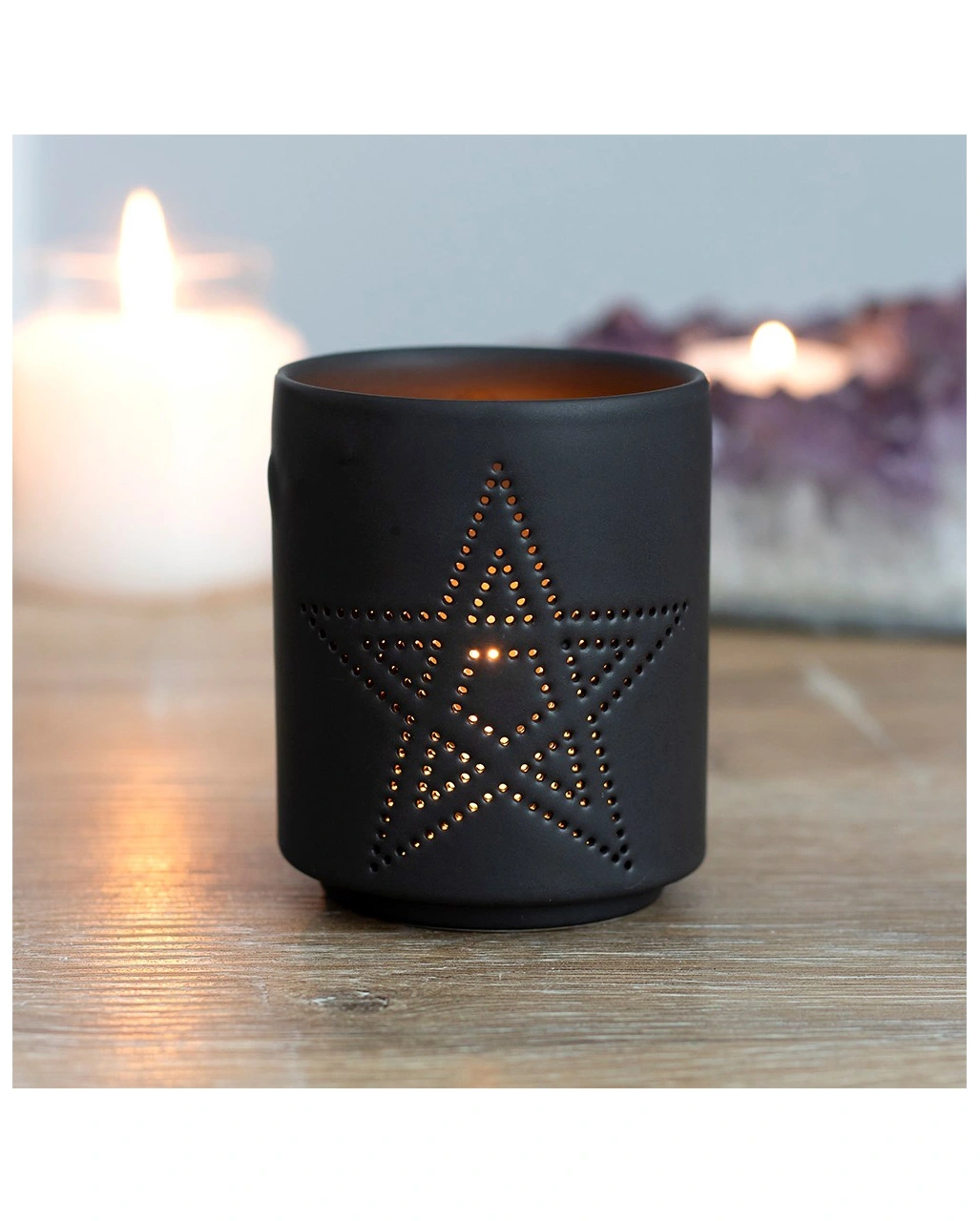 Schwarzer Teelichthalter mit Pentagramm