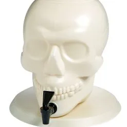 Der Totenschädel Getränkespender ist ein weißer Kunststoffbehälter, in dem deine Getränke ideal aufgehoben sind. Er ist ca. 26 cm hoch und im Schnitt 16 cm breit, und fasst insgesamt 7 Liter. Mit dem Totenkopfbehälter kommt eine kreisförmige Basis mit einem Durchmesser von 29 cm, die für den sicheren Stand des Totenkopfes sorgt. An der Nase des Totenkopfes ist ein schwarzer Zapfhahn angebracht, aus dem ganz einfach der Inhalt in eure Krüge befördert werden kann!
