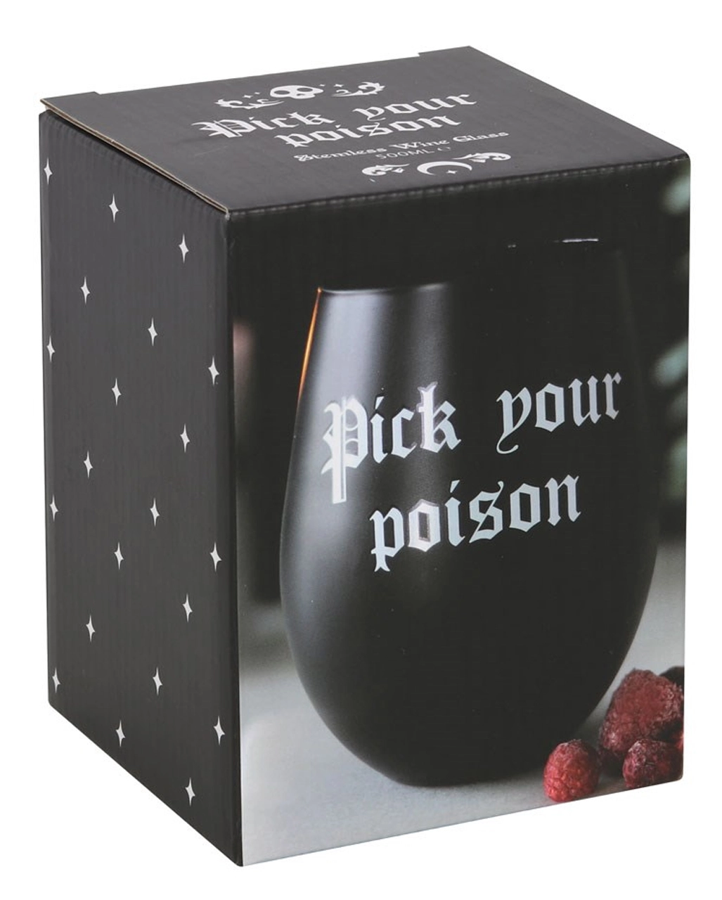 Das “Wähle dein Gift” Weinglas ist ein schwarzes Glas ohne Stiel. Es kommt mit weißem Schriftzug, der auf dem schwarzen Hintergrund super hervorsticht. das Halloween Poison Glas fasst ca. 500 ml. Achtung! Nicht für Mikrowelle und Spülmaschine geeignet. Nur per Hand waschen! Entdecke noch mehr Halloween Geschirr wie Gläser, Krüge, Becher und den Bone Appetit Trinkbecher 8 Stück.