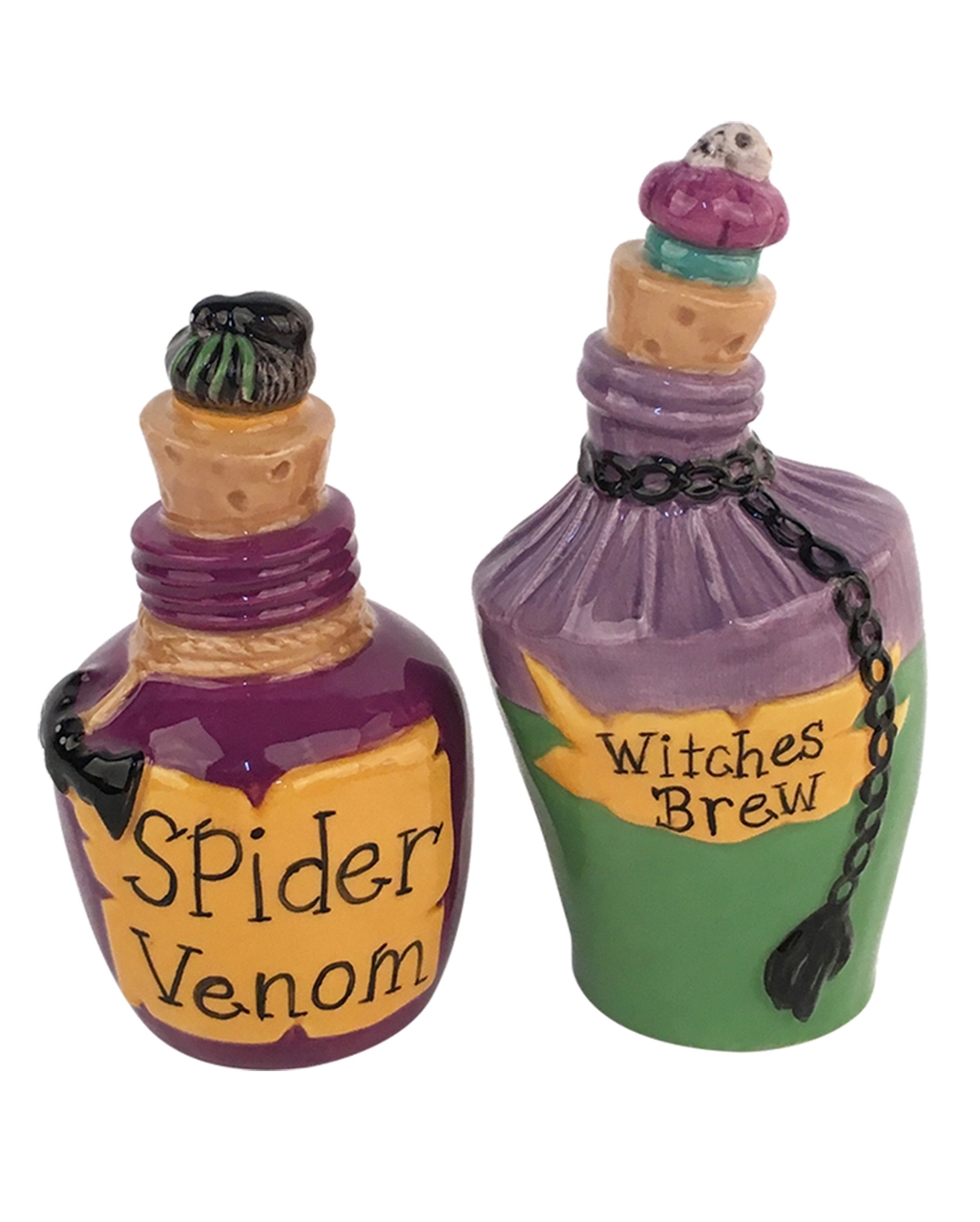 Die Zaubertrank Salz & Pfefferstreuer sind die perfekte Tisch-Dekoration für Halloween & die Hexenküche. Unsere Hexentrank Salz & Pfefferstreuer passen doch genial in dein Halloween Deko-Konzept! Die Zaubertrank Salz & Pfefferstreuer sind mit viel Liebe zum Detail aus hochwertiger Keramik gefertigt und von Hand bemalt. Als Geschenk oder Mitbringsel kommen Zaubertrank Salz & Pfefferstreuer ebenfalls gut an.